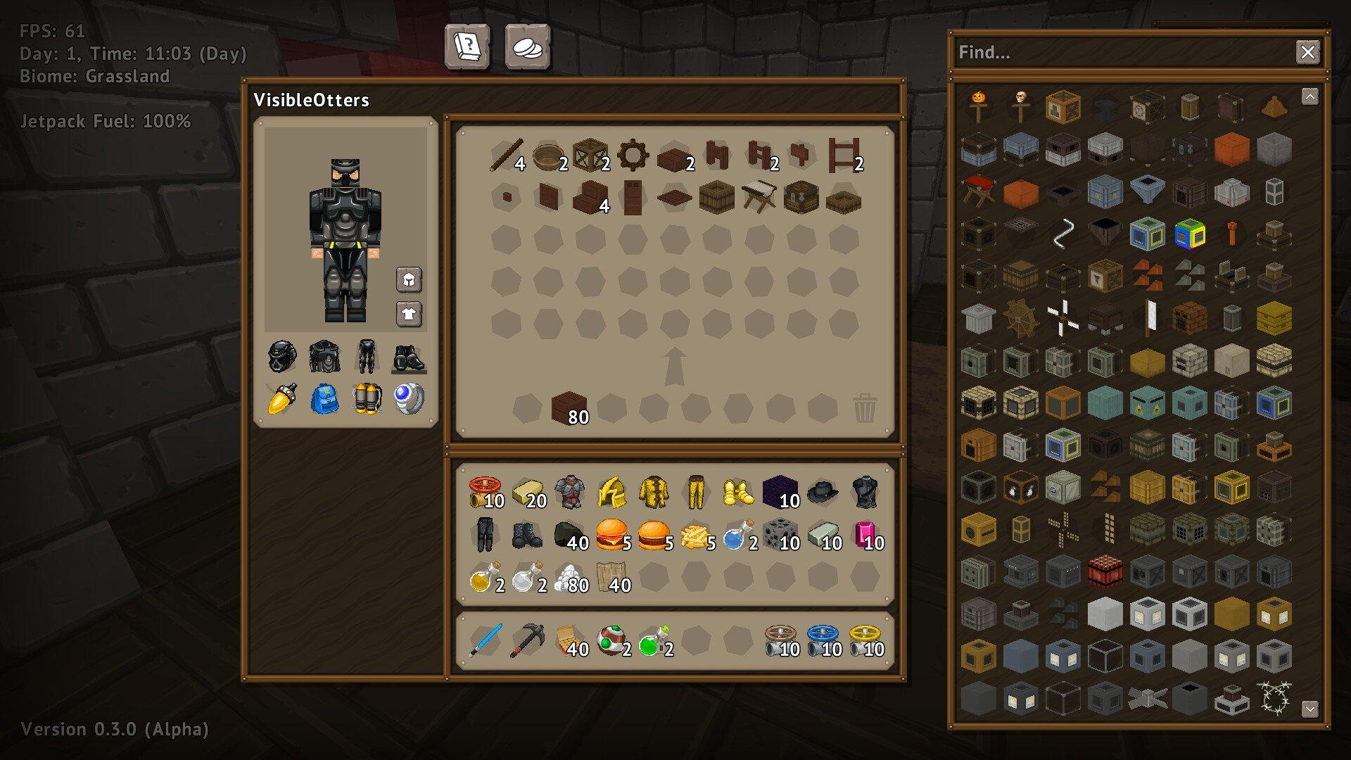 Что уже сделано: собственный движок, лаунчер для Windows (Linux в тесте), LAN‑мультиплеер, процедурная генерация мира, 70+ биомов и всякие суббиомы, реки, океаны, каньоны, пещеры с рудами и нефтью, богатая растительность, животные и животноводство, монстры и бои, цикл день/ночь и погода, инструменты, оружие, броня, рюкзаки, реактивные ранцы, магические артефакты и взрывчатка, технологическое развитие от камня до ядерной энергии, тысячи предметов, фермы, готовка, варка зелий, магия и трансмутация, песочница, мини‑карта, инструменты редактирования мира, естественно сгенерированные структуры с монстрами, ловушками и сокровищами, мега‑структуры и боссы, система квестов, шаблоны баз, мини‑игры. NPC есть в работе.