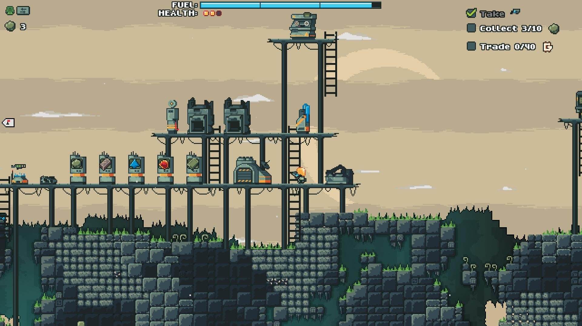 BLASTRONAUT - это пиксельный симулятор на тему майнинга, но не того майнинга, который уже многим поднадоел, а майнинга пл добычи реальных полезных ресурсов. Будучи майнером, вы будете добывать, при помощи взрывчатки и реактивного ранца, различные ресурсы. Благодаря рандомной генерации планет, вы никогда не знаете, какие биомы вас ждут на той или иной планете. Продавая ресурсы вы будете получать прибыль, которую можно тратить на обустройства базы на Земле, а также на приобретения, более совершенного, снаряжения.