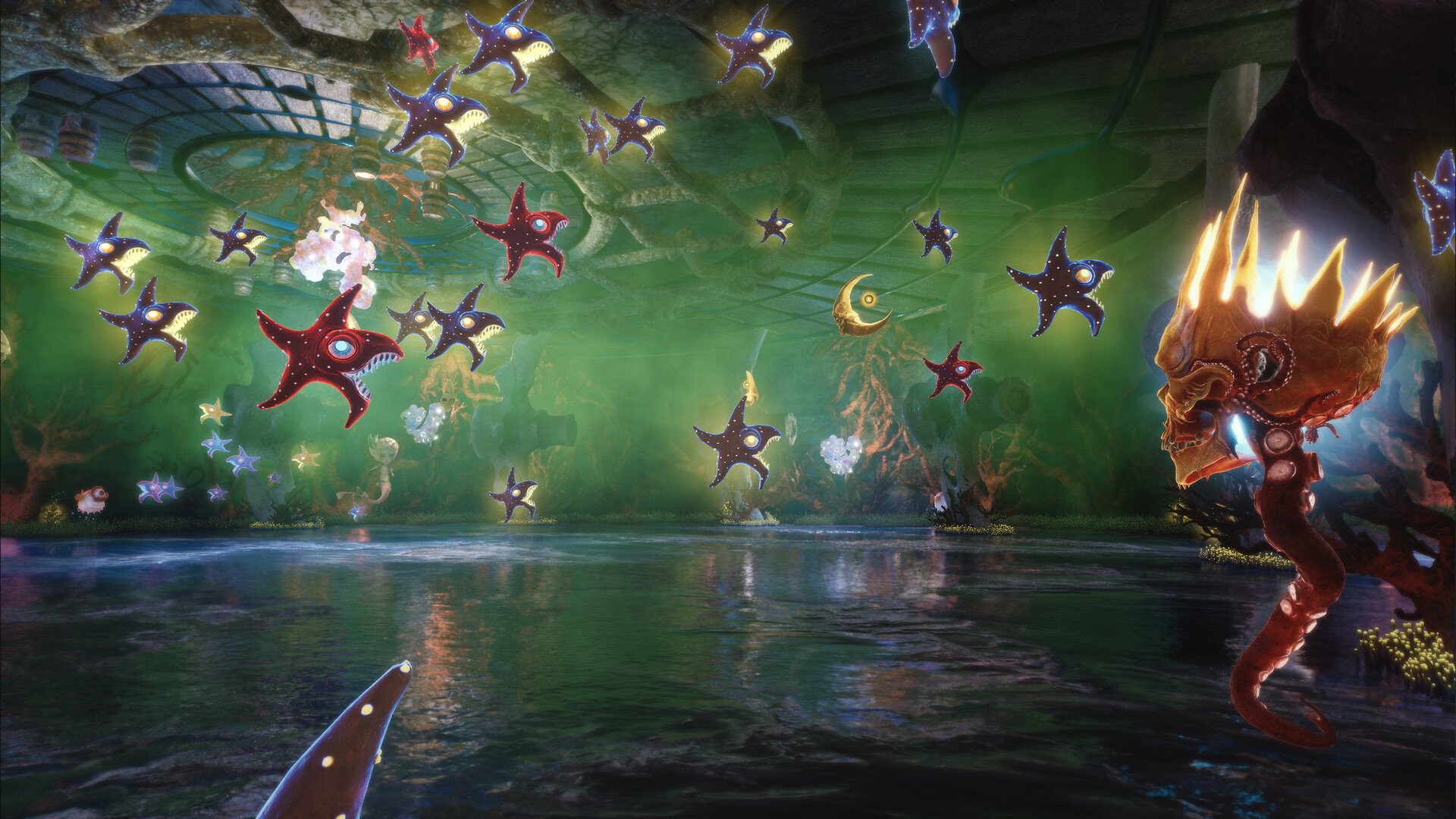 Игра предлагает исследовать Рундук - сюрреалистичный подземный архипелаг из девяти плавающих островов, полный искривлённых чудовищ, проклятых душ и легендарных стражей вроде Кракена. Бои проходят от первого лица: мастерите приемы с мечом, стреляйте из пистолетов и используйте абордажный крюк, а также взаимодействуйте с говорящим черепом, который влияет на сражения и тактику.